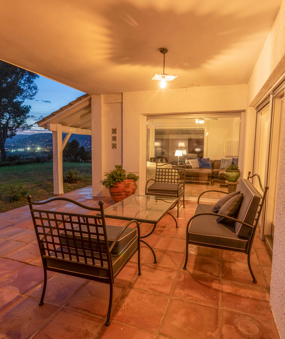 A luxurious master bedroom/suite with its own bathroom with hydromassage bath and shower. The master bedroom has direct access to the covered terrace with beautiful surrounding views. Two bright guest bedrooms and an extra bathroom